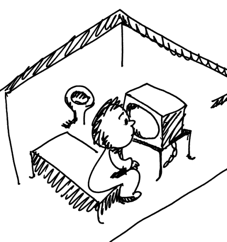 В гостинице, где нас разместили, маленькие номера, каждый? как стальная мыльница, был составлен из двух половинок. Причем все: кровать, тумбочка, стол, стул и туалет были выбиты в едином теле. Над туалетом на комиксе было нарисовано в картинках – как с ним взаимодействовать: на четвереньки не садиться – это зачеркнуто, садиться как на стул, сняв штаны, и по завершении нарисовано, как использовать туалетную бумагу. Русских объяснений не было, видимо пояснялось японцам. Но одна подробность озадачивала: телевизор был прикован к столу железной цепью. Это в Японии, где честность абсолютная?