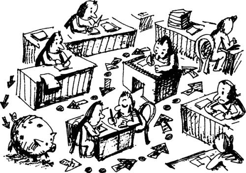 – Вот наша декорация. Так будет выглядеть мизансцена: свинья выходит отсюда, идет по коридору, поворачивает, еще раз поворачивает, здесь стол чиновника. Отсюда она должна взять лист важной бумаги, съесть его и убежать обратно. Сколько дней вам необходимо для подготовки этой мизансцены?