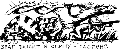 Герой в саспенсе действует по «принципу охоты». Он догоняет или убегает. Если догоняет, у него, как у борзой, работает одна извилина – догнать. Если убегает, действует другая, но тоже одинокая извилина – спастись от волка.