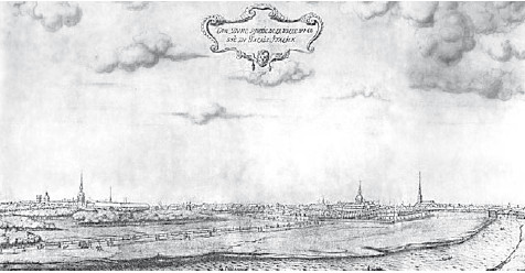 Вид на Адмиралтейский остров со стороны Мойки. Рисунок Х. Марселиуса. 1725 г.