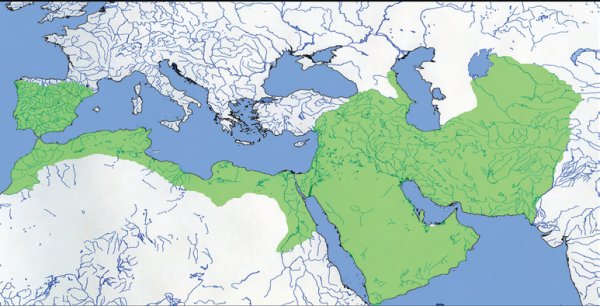 Рис. 1.2. Территория арабского халафата Омейядов к середине VIII столетия