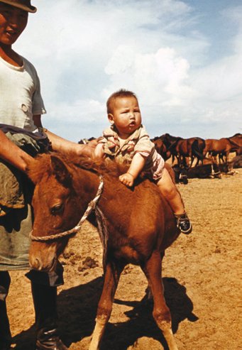 Рис. 2.14. Монголы становятся всадниками едва ли не на первом году своей жизни. Этот мальчуган еще не может ходить самостоятельно, но уже очень скоро его повседневная жизнь будет тесно связана с лошадью