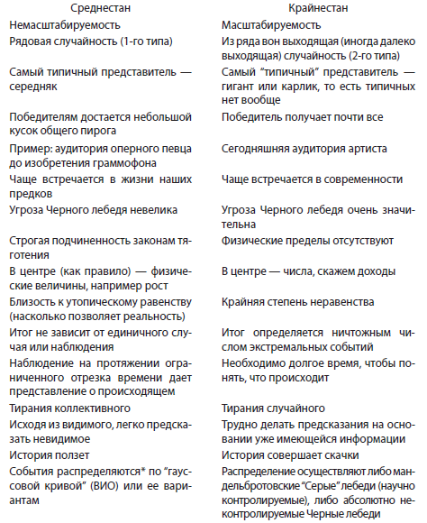 В Крайнестане не все лебеди Черные. Некоторые редкие и значимые события могут предсказываться, особенно теми, кто к ним готов и обладает инструментарием, помогающим их понять (вместо того чтобы слушать статистиков, экономистов и шарлатанов гауссианского разлива). Это – около-Черные лебеди. Они до некоторой степени научно контролируемы – информация об их периодичности может сгладить эффект сюрприза; эти явления редки, но ожидаемы. Я называю этот особый случай, этих Серых лебедей, мандельбротовской случайностью. Эта категория охватывает случайность, которой подчинены феномены, обычно определяемые такими терминами, как масштабируемость, масштабная инвариантность, степенной закон, закон Парето-Ципфа, коэффициент Юла, оптимум по Парето, Леви-движение и фрактальные законы. Мы пока не будем их касаться, потому что о них более подробный разговор пойдет в третьей части. Эти феномены масштабируются, но мы можем кое-что узнать про то, как именно это происходит, потому что масштабирование идет по законам, близким законам природы.