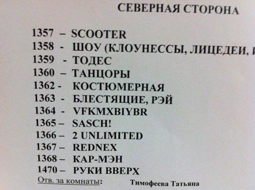 Обратите внимание, как зашифровано название группы в комнате под номером 1364. Специальная вражеская вылазка конкурентов???))) Доподлинно неизвестно!