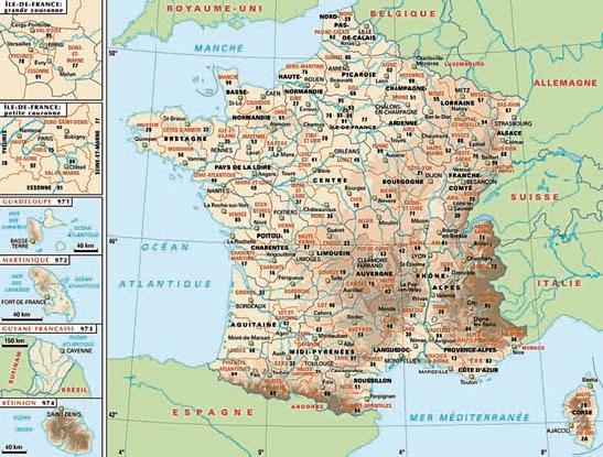 До Французской революции 1789 – 1794 гг. Франция была разбита на провинции, каждая из которых имела собственную столицу, где располагался Парламент, университет и собор. Король назначал в каждую провинцию губернатора, который выполнял роль представителя королевской власти. Каждая провинция представляла собой маленькую страну внутри большой – у каждой были свои законы и традиции. После Революции, дабы сгладить эти различия, а может быть, и полностью избавиться от «наследия королевских времен», была введена новая административная единица – департамент, на которые были поделены исторические провинции. Большинство департаментов получили названия гор и рек. Во главе каждого департамента теперь стоял префект, который назначался президентом Республики. Теоретически управление департаментами осуществлял Генеральный совет. Однако на практике префекты обладали практически неограниченной властью в своем департаменте. Лишь в 1982 году Закон предоставил больше полномочий Генеральному совету – местному органу власти. На сегодняшний день Франция насчитывает 96 департаментов – каждый с собственной столицей и расположенной в ней префектурой. В состав Франции входят заморские департаменты – Гваделупа, Мартиника, Гвиана, Реюньон, Сен-Пьер и Микелон; а также заморские территории – о-ва Новая Каледония, Французская Полинезия и др. Департаменты, в свою очередь, делятся на коммуны. Самой большой из 36 558 коммун является Париж, а самой маленькой – Орн (Ornes), что в департаменте Мез (la Meuse), которую населяет единственный житель. Коммуной управляет мэр – муниципальный советник. Коммуны объединяются в административный округ, для управления которым избирается генеральный советник.