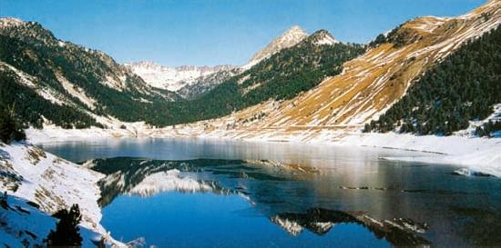 Горная цепь Пиренеев простирается вдоль границы с Испанией. В ледниковую эпоху Пиренеи не подвергались мощному оледенению, поэтому там нет крупных ледников и озер, живописных долин и зубчатых гребней, характерных для Альп. Высшая точка Перинеев – пик Д’Эстатс (3145 м). Из-за значительной высоты и труднодоступности перевалов связи между Испанией и Францией крайне ограничены. Сообщение между этими странами поддерживается преимущественно по немногочисленным узким проходам между горами и по морям на западе и востоке.