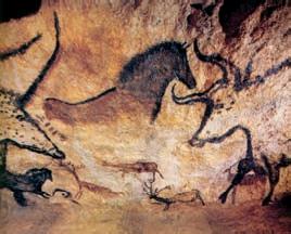 На вершине холма в департаменте Дордонь (Dordogne) в Аквитании в 1940 году случайно был обнаружен грот Ласко, наскальная живопись которого считается одним из лучших образцов первобытного искусства. Он образовался в результате просачивания карстовых вод сквозь известняковую скалу. Длина грота составляет 250 м, а площадь – 1500 м2. Этот грот представляет собой неповторимый памятник древности. Его стены сплошь покрыты живописью: на них изображено более 350 животных – лошади, бизоны, зубры, северные олени, каменные бараны, рыси, единороги, медведи. Как ни странно, изображение человека встречается в гроте всего один раз, причем это не просто фигурное изображение, а целая сцена: обнаженный мужчина с фаллосом в состоянии эрекции повержен на землю раненым бизоном. Ученые пытаются объяснить смысл этого и многих других рисунков, однако, к сожалению, пока выдвигаются лишь версии, не заслуживающие особого доверия. Помимо наскальной живописи, в гроте были найдены различные предметы, в том числе и орудия труда – кремневые орудия, жаровня, дротики и костяные иглы. Изучение этих предметов позволило определить возраст большей части наскальной живописи – от 14 до 15 тысяч лет. Некоторые ученые высказывают предположение, что грот Ласко служил для первобытных людей святилищем либо местом ритуальных танцев, связанных с охотой.