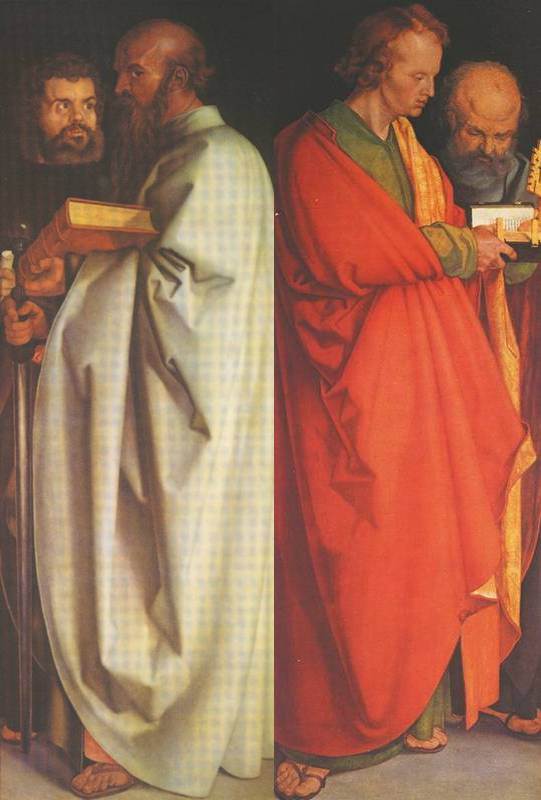 Увлеченность портретным жанром ощущается и в живописном диптихе Дюрера, получившем название «Четыре апостола» (1526, Старая пинакотека, Мюнхен). Монументальные, величественные фигуры Петра, Павла, Иоанна и Марка как будто воплощают в себе четыре типа темперамента.