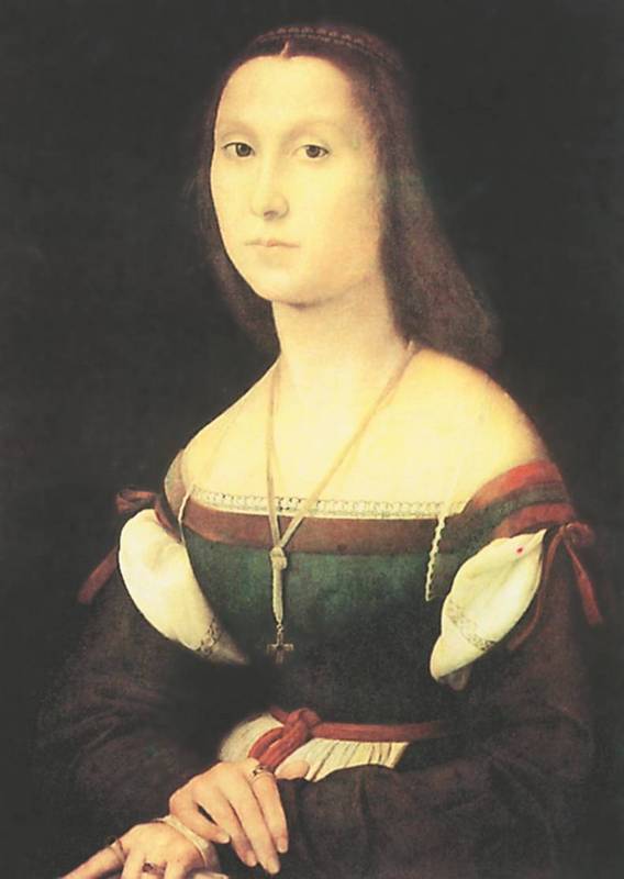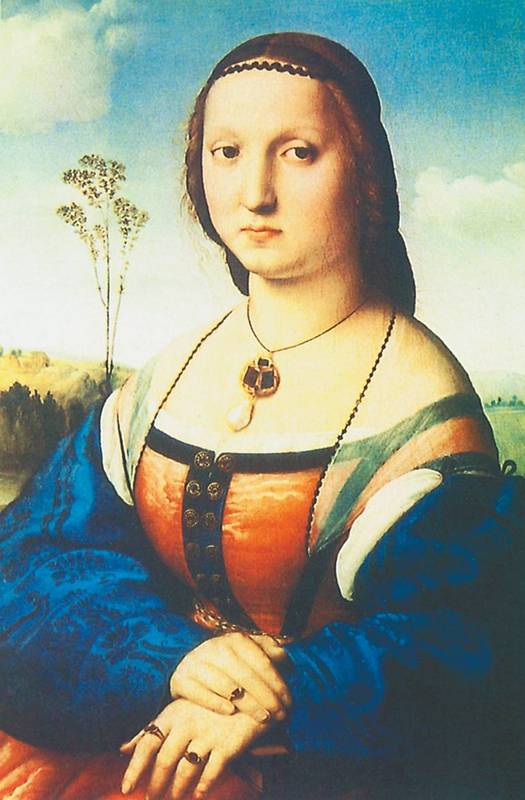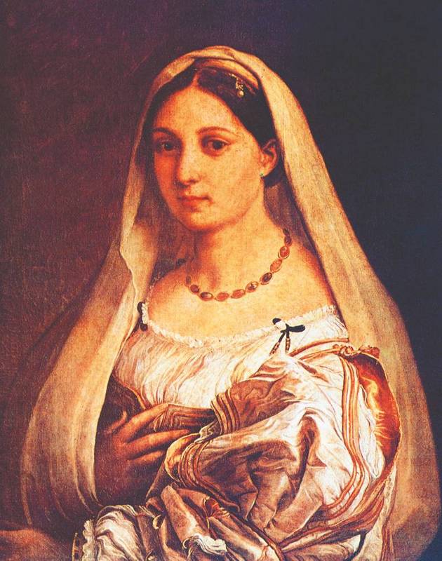 В творчестве Рафаэля, автора знаменитой «Сикстинской Мадонны» (1513–1514, Картинная галерея, Дрезден), немного женских портретов. Один из лучших – «Донна Велата» (ок. 1514, галерея Питти, Флоренция). Существует также ряд портретных женских образов, авторство которых вряд ли можно отнести к Рафаэлю. Много споров вызвала «Форнарина» (1518–1519), хранящаяся в Национальной галерее в Риме. С этим произведением связывают эпизод из личной жизни мастера. Друг Рафаэля, кардинал Биббиена, хотел, чтобы художник женился на его племяннице Марии Довици Биббиене, но ему не удалось добиться исполнения своего желания (однако когда Мария скончалась, ее похоронили в Пантеоне рядом с Рафаэлем как его невесту). Существует свидетельство, что Рафаэль всю свою жизнь любил дочь булочника Маргариту, которую уже в XVIII веке стали называть Форнариной. Тем не менее доказать, что портрет «Форнарина» принадлежит Рафаэлю, не смог никто. Возможно, картину написал кто-то из учеников великого художника.
