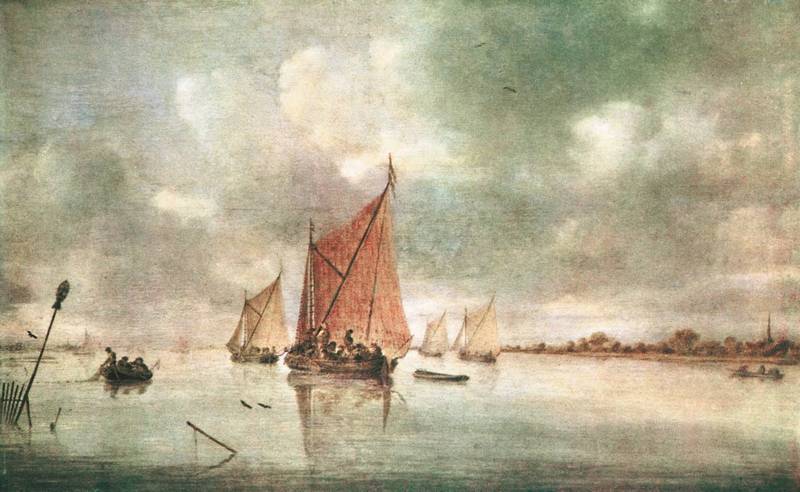 Больше динамики в работах Гойена, изображающих реки и морские просторы. Яркий пример тому — пейзаж «Река Маас близ Дордрехта» (1634, Эрмитаж, Санкт-Петербург). На полотне все охвачено движением. Суетливо снуют по воде рыбачьи лодки, плывут по волнам легкие парусники, стремительно несет свои воды широкая, словно море, река.