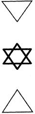 Звезда Давида в древнееврейской культуре (шестиконечная звезда) имеет емкое значение. Как и китайская гексограмма, представляющая собой единство двух триграмм, она, соединяя в себе два треугольника, обозначает Святое Святых, священное соединение двух разных начал – женского и мужского, Земли и Неба. Сплетенные в ней равносторонние треугольники означают разное: обращенный острием вниз – женское, обращенный острием вверх – мужское. Представляющая собой емкое понятие, скрепляющая в себе многообразные определения. Звезда Давида называется еще Печатью Соломона и является духовным символом еврейского народа.