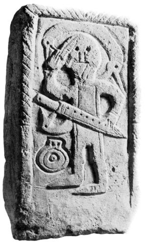 Германский надгробный камень. Воин с боевым ножом изображен в окружениии чудовищ преисподней
