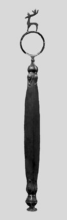 Оселок-точило из королевского погребения в Саттон-Ху в Англии. Священный олень венчает этот оселок, значит, ему придавалось магическое значение