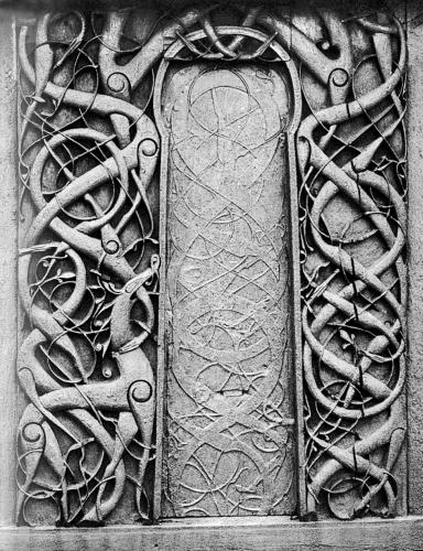 Резьба на портале деревянной норвежской церкви XII века в Урнесе сохранила образ оленя, грызущего ветвь мирового дерева