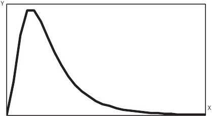 В 30-е гг. XX в. французский экономист Р. Жибра доказал, что распределение семей и их членов по доходу имеет правостороннюю асимметрию и выравнивается по логарифмическому нормальному распределению. Логарифмическое нормальное (логнормальное) распределение – это распределение случайной величины (х), логарифм которой (lnx) подчинен нормальному закону распределения. При малой дисперсии логнормальное распределение близко к нормальному. Логнормальное распределение определяется двумя параметрами: средним логарифмом доходов (lnXo) и средним квадратическим отклонением логарифмов доходов (?) (рис. 1.1). Функция логнормального распределения рассчитывается по формуле: