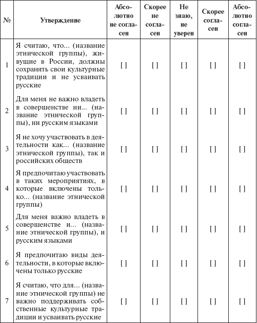3.3.2. Опросник, предназначенный для изучения аккультурации мигрантов