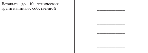 21. Теперь нам хотелось бы выяснить ваше отношение к некоторым социальным группам. Просим вас использовать шкалу, подобную термометру, для выражения вашего отношения. Этот термометр имеет деления от 1 до 100 «градусов». Если у вас в целом благоприятное отношение к какой-либо группе, вы присуждаете ей любое количество «градусов» в диапазоне от 50 до 100, и, наоборот, при неблагоприятном отношении вы присуждаете группе от 0 до 50 «градусов» (в соответствии со степенью вашего неприятия). Приведенная ниже шкала поможет вам расположить группы в соответствии с вашим отношением. Вы не ограничены в своем выборе и можете использовать любые оценки от 0 до 100 «градусов».