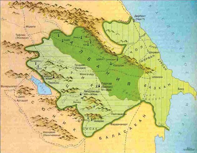 В III в. на Кавказскую Албанию напал Иран. Его, как и других завоевателей, привлекало расположение этого государства. Его территория была своего рода мостом, соединяющим север и юг, запад и восток. Тогда еще была построена дербентская крепость (помните, мы ездили туда на экскурсию?).
