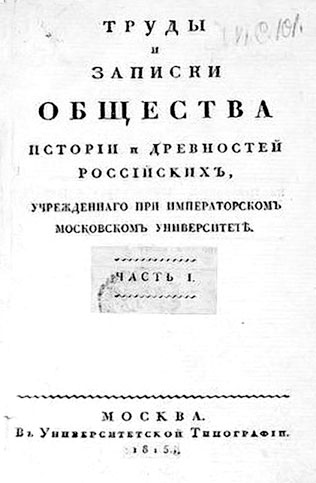 Записки и труды Общества истории и древностей Российских. 1815 г. Обложка