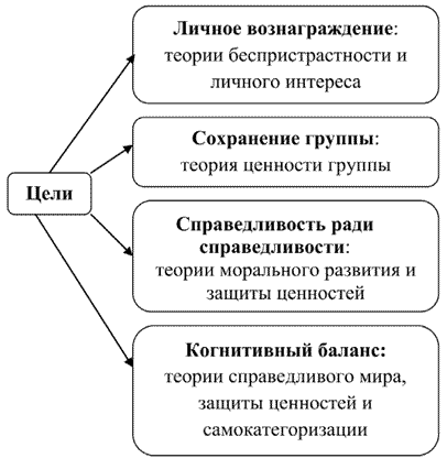 Вопрос о причинах соблюдения справедливости был впервые поставлен в рамках социальной философии. Описывая справедливое государство, специалисты руководствовались определенными представлениями об основных целях человеческой деятельности. Развиваясь на протяжении столетий, философские теории сыграли важную роль в создании общего культурного и научного контекста. Благодаря этому, они оказали некоторое влияние на психологические концепции (рисунок 7).