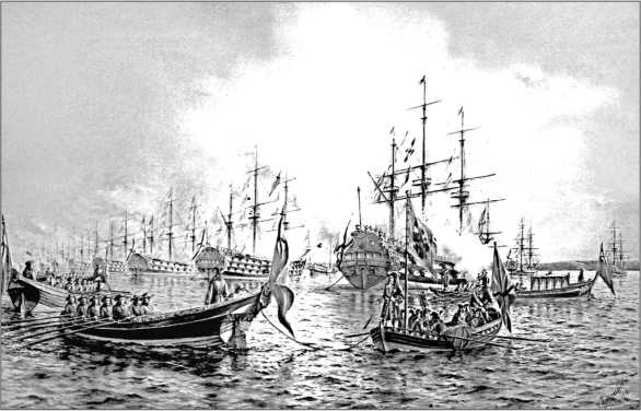 Парад кораблей во главе с ботиком Петра I.Художник С.Д. Всеволожский