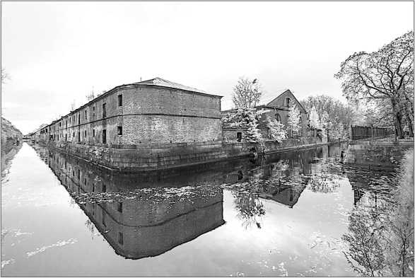 Однако этот проект Адмиралтейства реализован не полностью. Строительство Обводного канала началось в 1785 г., а закончилось только в 1827-м. В 1784 г. заложили здание (длиной 426 м) канатного завода, оно расположено на берегу восточного участка Обводного канала. Скромный фасад завода в 1819–1829 гг. переделан по проекту архитектора А.Н. Акутина, оштукатурен, оформлен ложной аркатурой. В таком виде фасад сохранился до наших дней. В 1830–1831 гг. со стороны канала пристроили помещение для паровой машины. Кронштадтский канатный завод долгое время обоснованно считался одним из лучших не только в России, но и за границей.