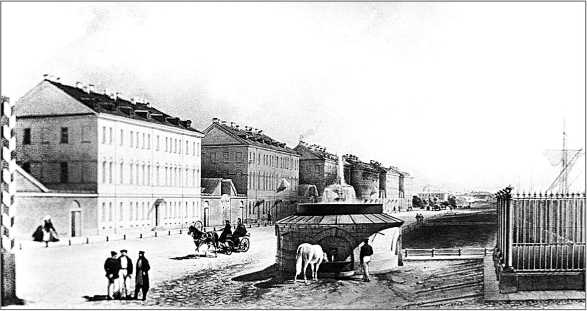 Итальянский пруд, располагавшийся перед дворцом, долгое время оставался неухоженным. Лишь в 1797 г. по распоряжению генерал-интенданта П.И. Пущина началась реконструкция его берегов. Цоколь и решетку установили по двум сторонам: «С вестовой, к таможне, а с нордовой против Кадетского корпуса – цоколь тротуара из дикого морского камня, точно такой же сыпи, каков уже по всему проводному каналу под железный палисад положен»[146]. Для нужд Морского корпуса на берегу пруда уже имелась «лестница дикого камня для приставания мелких судов», в описании здания, датированном 1798 г., сказано: «…с лица оного строения к Итальянскому пруду и в заворот по каналу палисад решетчатый крашеный, а у парадного двора забор крашеный, ворота одни, калитки в обе стороны […] к западной стороне по наружности обнесено деревянным забором»[147].