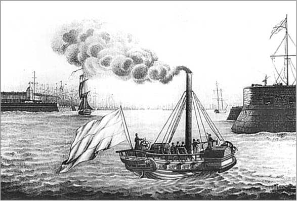 Но прошло всего девять лет, и Кронштадт встречал первый пароход, прибывший из Петербурга. 3 ноября 1815 г. пароход, построенный Чарльзом Бердом[163] в Петербурге, вышел из столицы и через 3 часа 15 минут подошел к Котлину. В 10 часов 15 минут пароход подошел к «военному углу Кронштадтской гавани». Пароход обошел несколько раз вокруг брандвахтенного фрегата, стоявшего между «Кроншлотом» и гаванью. Удивленные кронштадтцы встречали это чудо техники на стенке Купеческой гавани.