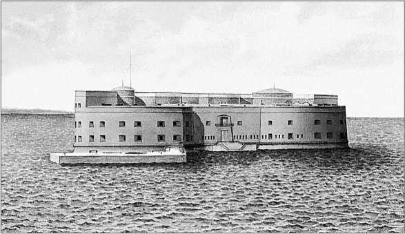 Проект форта создал Карбоньер, но отсутствие геологических исследований грунта дало повод посчитать недостаточно убедительным его проект. Морское министерство 31 мая 1836 г. сообщило Строительному департаменту по морской части, что проект основания форта, созданный Карбоньером, вызвал определенные сомнения, и работы решено остановить. Для разработки нового проекта был создан специальный комитет во главе с инженер-генерал-лейтенантом Корпуса путей сообщения М.Г. Дестремом, и на него было возложено поручение дать свое мнение и предложения по этому вопросу. Вскоре князь А.С. Меншиков сообщил, что мнение Дестрема (т. е. его проект) утверждено Николаем I, и предложил Дестрему руководствоваться этим мнением в своей дальнейшей деятельности, прилагая эту записку к распоряжению[183]. А через месяц, 20 июня, в Строительный департамент из Морского министерства была послана для руководства копия с записок А.С. Меншикова, утвержденных императором 18 июня 1836 г. на яхте «Александрия». В записках говорилось: «Строителем нового форта на Кронштадтском рейде Высочайше назначен инженер-полковник Лебедев, а главный надзор за работами возлагается на генерал-лейтенанта Дестрема»[184].