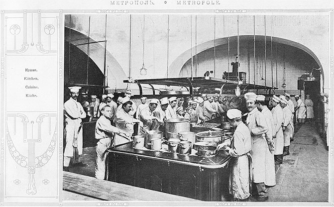 «Бойкий человек с черпаком в руках стоял ногами на бархатном диванчике и покрикивал: «Ну, шевелись, а ну, дружно!» – и шлепал кашу в подставленные миски, тарелки, банки…» – такой видела эту картину маленькая Соня Пилявская, жившая в «Метрополе» вместе с отцом, крупным партийным функционером. (Когда девочка выросла, она стала актрисой Художественного театра, и даже те из нас, кто ни разу во МХАТе не был, помнят Софью Пилявскую в роли аристократичной Алисы Витальевны, тётушки Костика, в фильме «Покровские ворота».)