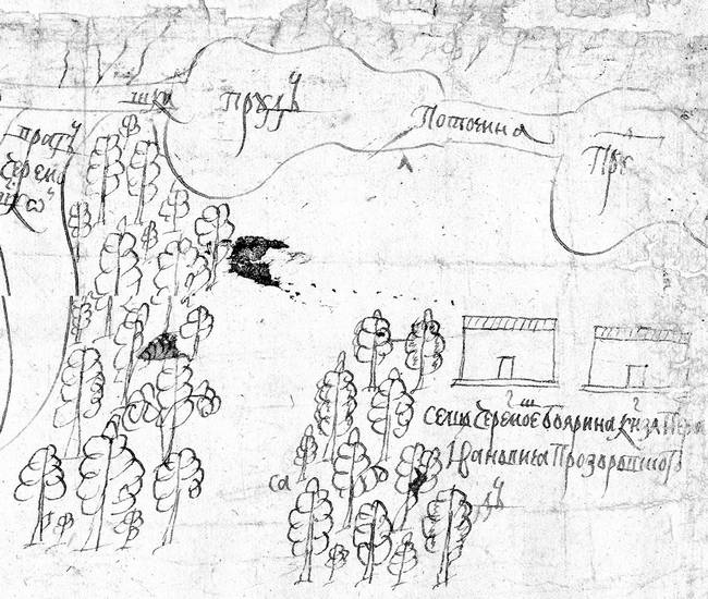 Фрагмент чертежа 1694 г. Сельцо Черёмошье боярина князя П.И. Прозоровского