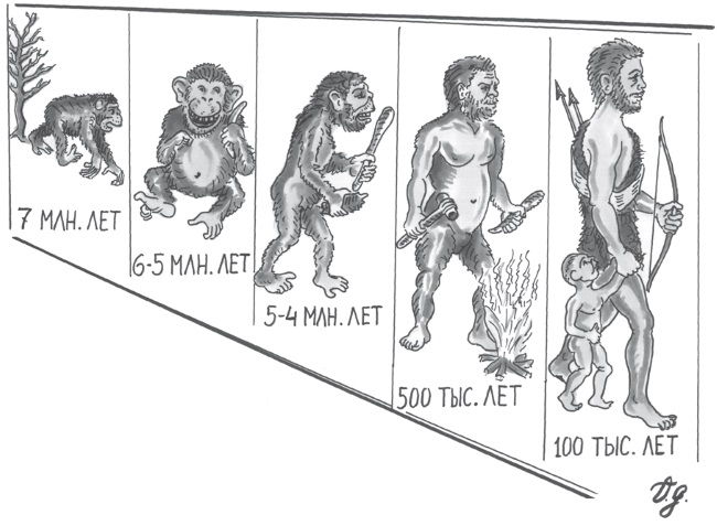 Рис. 4–3. Схематическое изображение этапов эволюции человека.