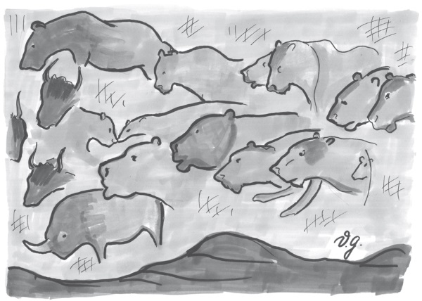 Наскальные изображения были сделаны в период от сорока до двенадцати тысяч лет назад. Это 2058 изображений животных и 106 изображений людей. Кроме росписей изготовлялись скульптуры и процветала резьба по кости (Рис. 8–1). Можно предполагать, что пещер с росписями и скульптурами было даже больше, но они были уничтожены наплывавшими с севера ледниками, и это искусство зачахло и прекратилось. Последний ледниковый период наступил двенадцать тысяч лет назад.