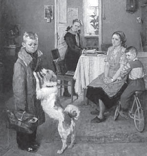 Уникальный эпизод истории искусства, который нами берется как пример – поставангард конца 1920-х – начала 1930-х годов в России. В это время, когда авангард вступил в фазу своего заката, произошел резкий поворот от беспредметности к фигуративной композиции в живописи. Однако новая фигурация несла память об авангарда, что проявилось как в стиле, так и в семантике произведений. Важный вопрос, на который история искусства еще не дала ответа, состоит в том, в чем именно состоял этот след. Ясно, что авангардом был создан новый субъект художественного языка. Об этом свидетельствуют более приближенные к нам эпохи. Так, в живописи соцреализма 40–50-х годов возникали почти точные реплики реализма до-авангардного, передвижников. Примером может служить картина А. Решетникова «Опять двойка» (1952, ГТГ) [илл. 1], композиционно почти полностью повторяющая известное полотно И. Репина «Не ждали» (1888, ГТГ) [илл. 2]. Однако авангардная парадигма, с одной стороны, и опыт отечественного концептуализма 70–80-х годов с его самоиронией – с другой, заставляет прочитывать художественное сообщение картины советского мастера не только спрямленно-дидактически (хотя очевидно, что сознательной интенцией автора было именно это), но и сквозь призму опыта авангарда и поставангарда, в духе игровой интертекстуальности и как событие постистории. Т. е. художественный опыт зрителя и – подспудно – самого автора радикально влияют на интерпретацию и общее формирование значения повествования. Однако дело не только в восприятии. Этот пример показывает, как важно задаться вопросами, каким образом на уровне наррации происходит переключение фокуса зрения, каковы агенты наррации в позднем фигуративном авангарде.