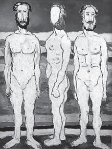 С радикальным субъектом авангарда произошла метаморфоза – он трансформировался в радикальный объект поставангарда (например, тема катастрофы, определявшая в историческом авангарде область поэтики, в конце 20-х годов заняла зону мотивики русской живописи). При этом среда повествования может быть описана оппозицией плотная/прозрачная. Критерием степени плотности может служить степень акцентировки плана выражения. Уплотнение плана выражения, т. е. его усиление, интериоризирует точку зрения, т. е. вводит зрителя внутрь повествования, а его опрозрачивание – наоборот, экстериоризирует ее, задает зрителю положение извне. В поставангарде сохраняется плотность плана выражения и происходит перенос иконического значения в план индексального. След авангарда реализуется как оплотненность плана выражения. Последний влечет за собой скрыто-временную позицию зрителя, что усиливает напряжение отношений нарратор – зритель. Нарратор задает интертекстуальный код, при этом позиция зрителя как бы перемещается внутрь картины-рассказа: зритель оказывается своего рода свидетелем описываемого события, т. е. развертывания визуального повествования во времени. Приведем три примера.