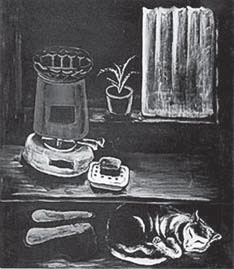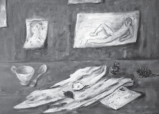 Драматизм вещных нарративов картин Г. Рублева под стать драматической судьбе их автора. Георгий Рублев (1902–1975) родился в Липецке, учился во ВХУТЕМАС’е, в 1920-е годы участвовал в разнообразных художественных объединениях, разрабатывающих проблемы новой фигурации, критиковался за формализм, однако в 1930-е годы резко изменил свои позиции и начал выполнять государственные заказы на оформление парадов, праздников, монументальных росписей в общественных постройках (в частности, по его проектам оформлена станция метро «Серпуховская»). Цикл работ конца 1920-х – начала 1930-х годов до поры до времени хранился у художника дома и был обнародован только с приходом новых времен, сразу став сенсацией: поразили гротескная манера мастера, двусмысленная трактовка злободневных сюжетов и загадочность общего смысла. Такого рода необычностью отмечена прежде всего картина «Письмо из Киева». В восприятии современного зрителя, улавливающего в изображении нечто зловещее, картина ассоциируется с атмосферой надвигающегося сталинского террора. Тема страшного становится в эти годы одной из доминирующих в советской живописи [Злыднева 2007]. Однако полотно, о котором идет речь, едва ли прочитывалась в этом ключе современниками, для которых трагические события, последовавшие после года ее создания, были закрыты неясными очертаниями грядущего.