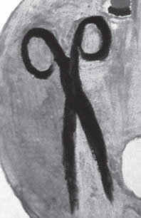 Однако ключ к контексту открывает семантика формы. Обратимся к созданному художником тремя годами позже полотну «Сталин, читающий газету Правда» (1933, ГТГ) [илл. 36]. Гротескная фигура вождя решена все в том же раешном, ироническом ключе стилизации под примитив: неканонический генералиссимус представлен в кресле-качалке за чтением газеты «Правда», а у его ног расположилась такса, скобообразным разворотом своего тела вторящая круглящейся фигуре в кресле. На красном фоне полотна выделяются черные брови, глаза и усы главного персонажа. Той же чернотой отмечены и ножницы в «Письме из Киева»: экспрессивный способ их обозначения активно приковывает внимание зрителя. Инструмент изображен в «стоячем» положении, обретая подобие человеческой фигуры – и/или мужского лица с усами и бровями (!). Сравнение с одновременными полотнами не оставляет сомнений. Это – схематическое обозначение лица Сталина. Если совместить обе значимые детали, окажется, что портрет почти в точности совпадает с очертанием вещи [илл. 37, 38]. Таким образом, перед нами – изобразительная анаграмма. Дополнительная игра разворачивается в сфере уже словесного, благо активная роль письменности в составе композиции подталкивает к такого рода ассоциации: материал ножниц (сталь) и способ организации их механики (ось) представляют вербальную параллель визуальной анаграммы имени вождя: Иосиф Сталин[12]. Соединение колюще-режущего инструмента с именем-лицом Сталина трансформирует послание: иллокутивный акт эго-текста повествователя становится одновременно и актом перлокутивным – актом-предостережением. Тем самым, настоящее оказывается черной дырой – знаком катастрофы, сам рассказ – инверсированным автопортретом времени, а анаграмма – шифрованным эго-документом, обращенным автором к самому себе.