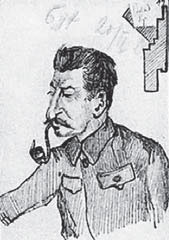 38. Н. Бухарин. Портрет Сталина. Шарж.