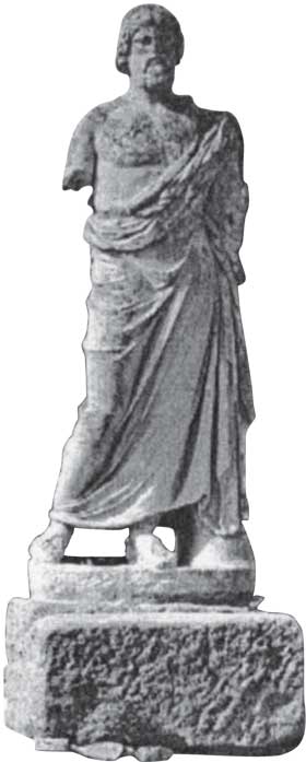 Статуе была суждена вторая жизнь: еще в античную эпоху ее обрезали до размеров и пропорций бюста, в тыльной части выбили отверстие в виде ниши (для хранения праха некоего усопшего?) и поместили в могилу в качестве апотропейя – предмета, наделенного особой магической защитной функцией.