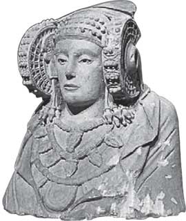 Бюст дамы удивительной красоты был найден в 1897 г. на некрополе иберийского поселения Серро де Лос Сантос (совр. город Эльче, пров. Аликанте) и своей оригинальностью сразу же привлек внимание ученых. Их мнения разделились: одни считали даму знатной иберийкой конца IV – начала III в. до н. э., другие видели в ней гречанку или даже восточную аристократку более раннего времени. После полувековой полемики возобладала, как это часто случается, компромиссная точка зрения: это скульптурное изображение иберийской дамы, выполненное не ранее III в. до н. э. местными мастерами, хорошо знакомыми, однако, с восточносредиземноморскими традициями ваяния.