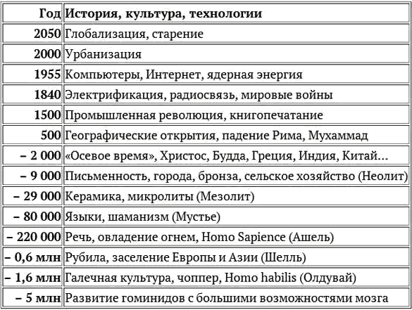 Таблица 1.1. История человечества в логарифмической шкале времени