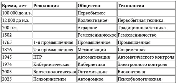 Таблица 1.2. Десять стадий развития технологий человечества по К. Татеиси