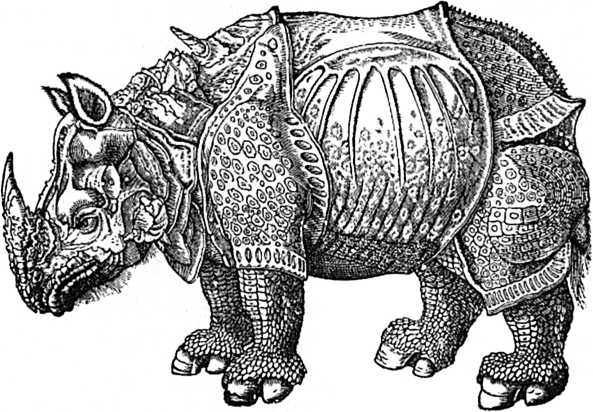 Знаменитая гравюра носорога, доставленного в Португалию, сделана Альбрехтом Дюрером в 1515 г. на основе переданных ему набросков и рассказов. На хребте у носорога дополнительный рог, похожий на рог единорога