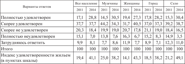 Таблица 11. Удовлетворенность жилищными условиями населения Беларуси, 2011–2014 гг., % от числа ответивших