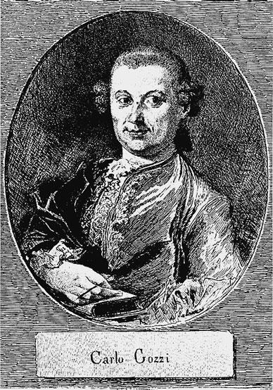 В это же время расцветает традиционная комедия дель арте – комедия масок. Ярким представителем ее в Венеции был великий автор фьяб[6] Карло Гоцци (1720–1806). Соперником и открытым врагом Гоцци стал Карло Гольдони (1707–1793) – создатель итальянской национальной реалистической комедии.
