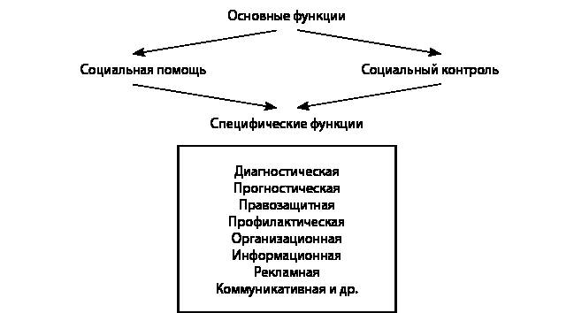 Необходимость достижения оптимальной взаимосвязи между функциями социальной помощи и социального контроля проявляется в социальной работе в осуществлении целого ряда ее более конкретных, специфических функций. Эти функции выполняют отдельные субъекты социальной работы – специалисты и организации. К ним относятся диагностическая, прогностическая, профилактическая, информационная, правозащитная, рекламная, коммуникативная, организационная и другие функции (рис. 2)