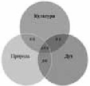 • У каждой окружности есть ни с чем не пересекающаяся часть. С природой все ясно; дух предполагает неизвестный нам источник; у культуры же есть область, над которой уже не властны ни природа, ни дух. Это самый сложный случай, поскольку тут мы имеем дело с невидимой, но действующей объективной силой. Это – «отчужденная» культура. Правда, она не может пребывать в покое: рано или поздно на эту территорию вторгнутся или дух или природа. Скажем, ирригация создала первые цивилизации, но природа ответила феноменом «засоления» почвы, а дух – новыми технологиями.