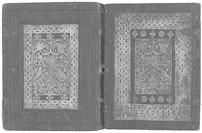 Переплет XVII в. с суперэкслибрисами МПД на издании: Служба на положение Ризы Господней. М.: Печ. двор, 1625 (Я. 1,140)