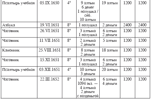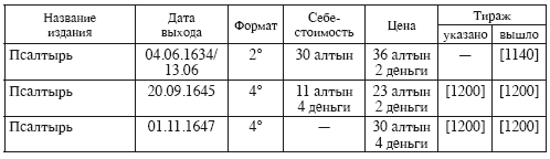 По разным причинам в таблице не были учтены три издания Учебных псалтырей – тиражом 3540 экземпляров: