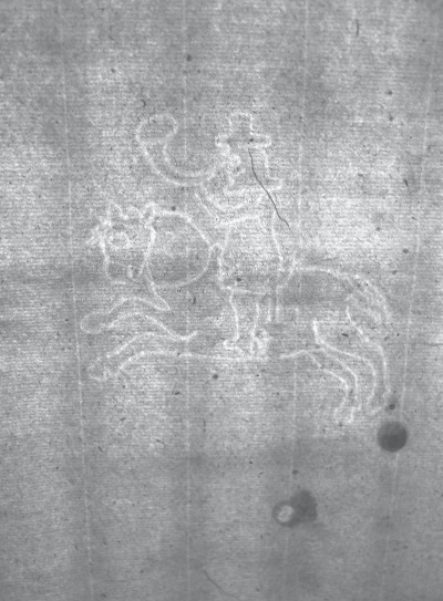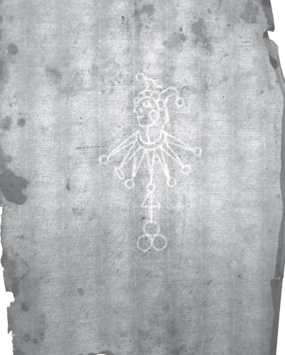Филиграни европейской бумаги, использованной МПД для издания книг в XVII в.: а – филигрань «Герб Амстердама»; б – филигрань «Шут»; в – филигрань «Почтальон»; г – изображение на пачке бумаги с фили гранью «Почтальон»